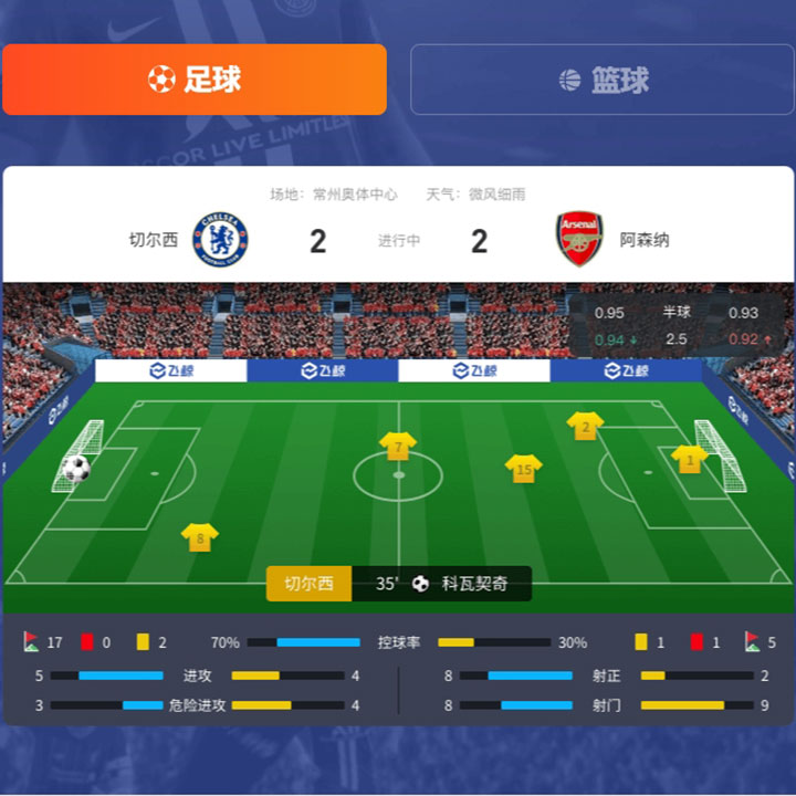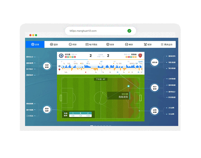 提供包括足球、篮球、电竞、网球赛事在内的实时数据、统计数据、即时指数、动画直播、资料库等全面数据服务。