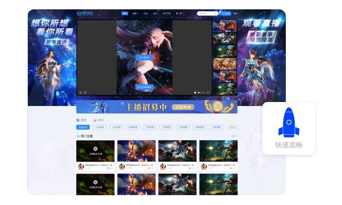 我们的功能页面设计是参考了行业领先的斗鱼和虎牙平台,并且功能更加丰富。 -